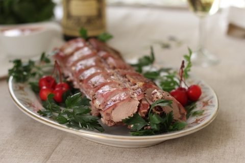 Спинка козлёнка с виноградом и дикими яблочками