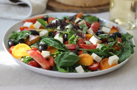 о Кресс-салат с томатами, козьим сыром и базиликом